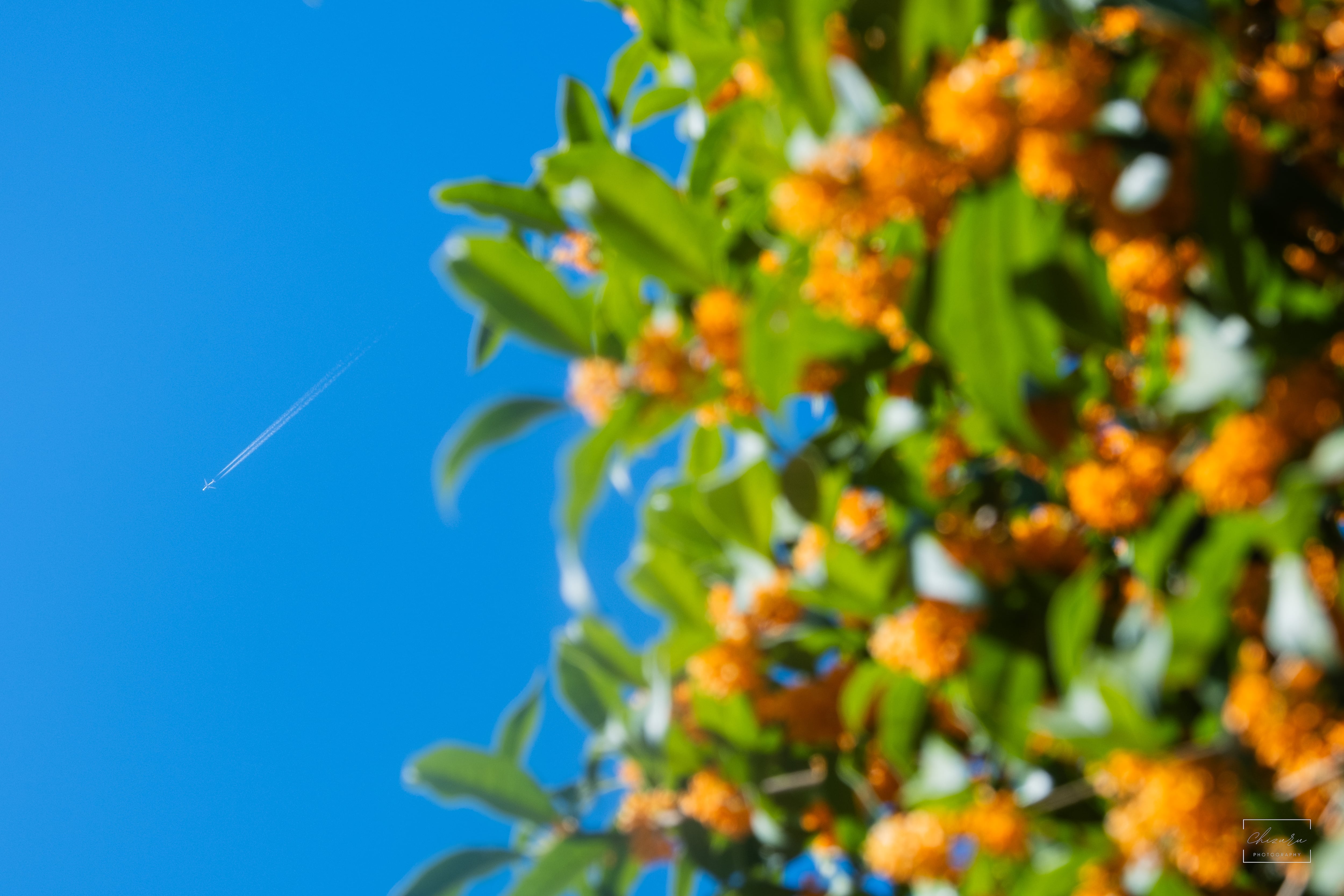 ・金木犀と飛行機雲